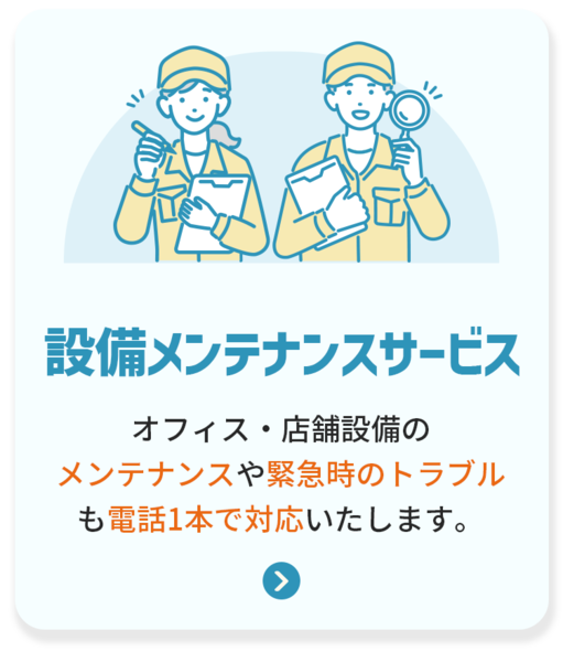 オフィス・店舗設備のメンテナンスや緊急時に発生したトラブルにも電話1本で迅速かつ丁寧に対応いたします。